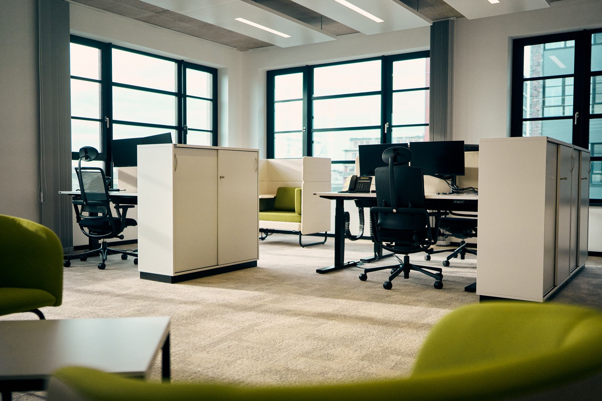 Das Projekt startete im Jahr 2021 mit der Entwicklung von Zielen und Leitlinien der Planung in Zusammenarbeit mit der Amtsleitung. Diese Vorgaben dienten in den nachfolgenden 20 Nutzerinterviews als Grundlage der Anforderungsermittlung und flossen in ein Nutzerbedarfsprogramm ein, das den Ausgangspunkt aller weiteren Projektschritte bildete. Die konkrete planerische Umsetzung erfolgte Mitte 2023 im Rahmen von Nutzerworkshops mit Mitarbeitenden aus allen Ressorts. Im Ergebnis entstand eine moderne, multifunktionale Bürowelt mit individuellen, auf die Anforderungen der Fachbereiche ausgerichteten Arbeitsplatzkonzepten. Die von Kardham entwickelte Planung schuf damit die Grundlage für die Mobiliarauswahl und die anschließende Möblierungsplanung.