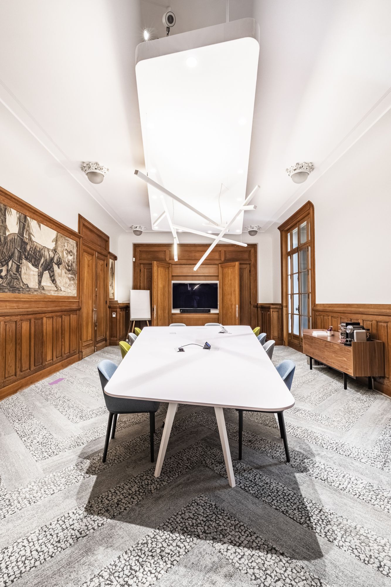 Les boiseries d'origine ont été conservées et renferment désormais des écrans et autres équipements technologiques