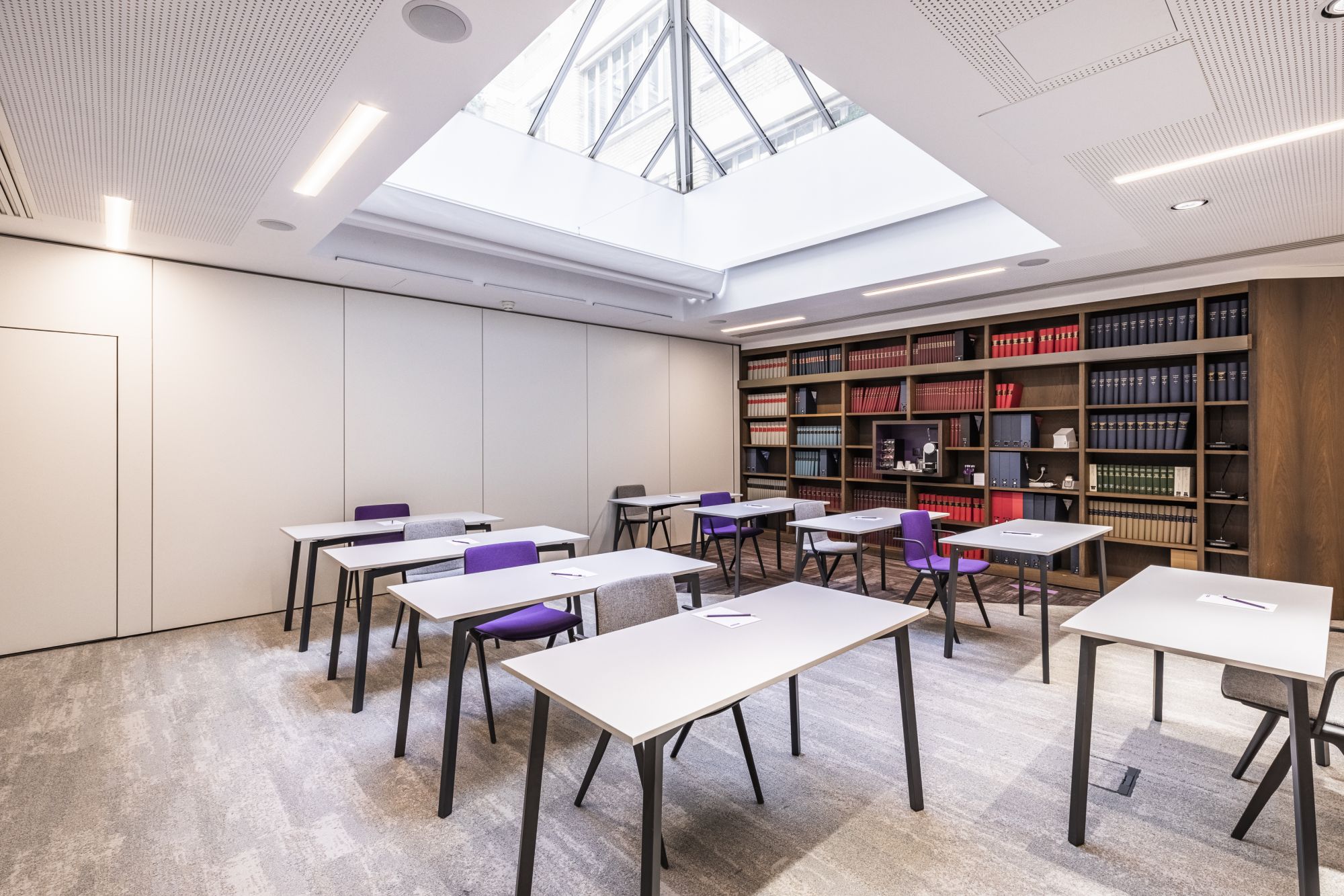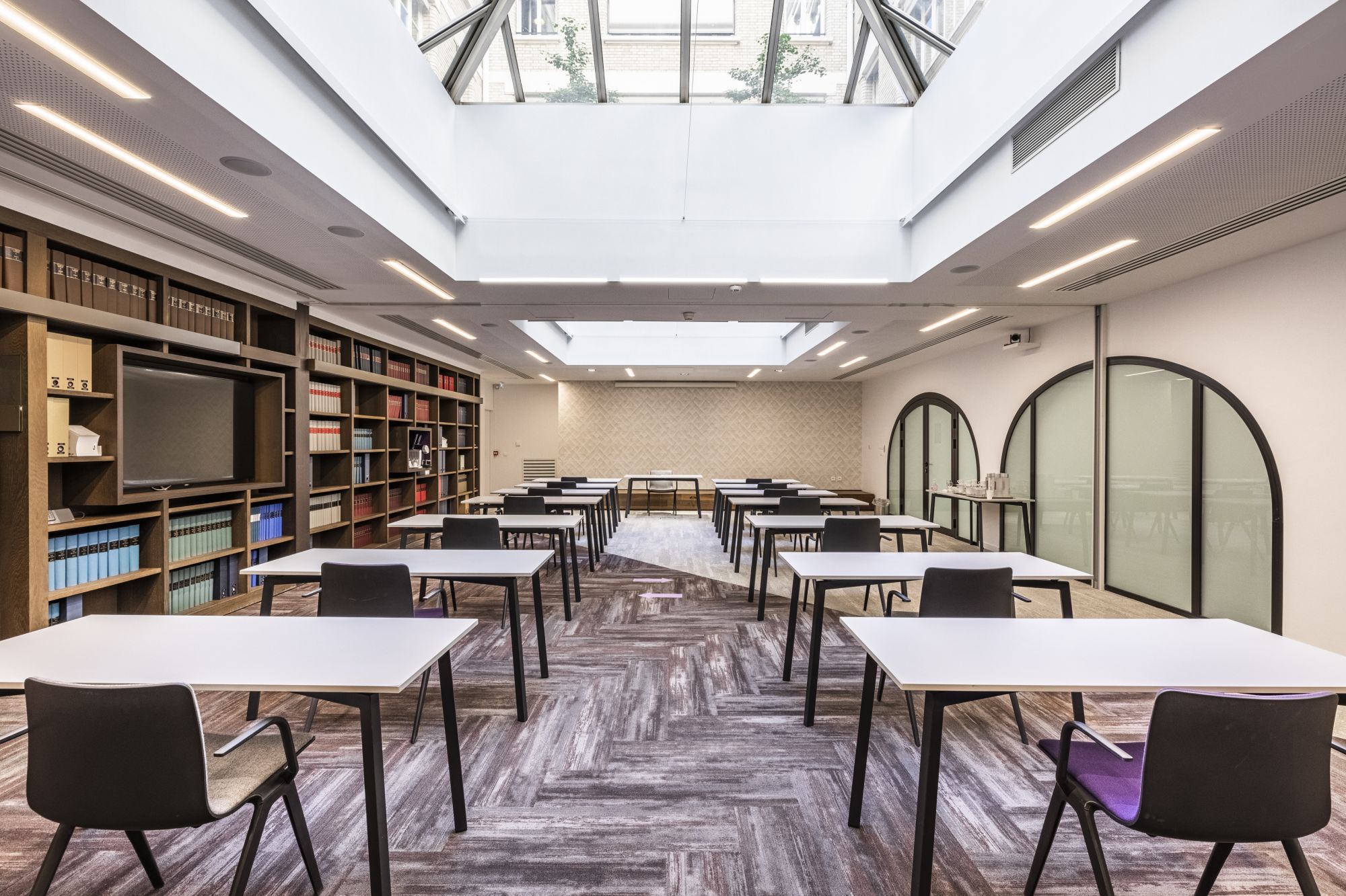 Signature architecturale premium marquée notamment par la transformation de la bibliothèque en auditorium modulable et la conception d’un espace d’accueil.