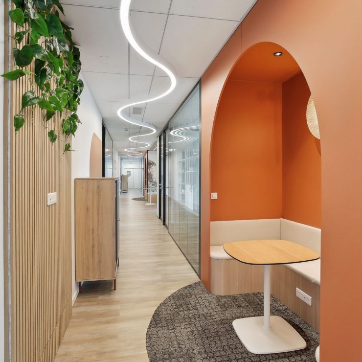 Situé dans un quartier privilégié du centre historique de Madrid, le siège de Havas Media a été conçu pour être plus qu'un simple bureau : c'est un centre d'innovation et de collaboration. Le premier étage a été conçu comme un espace exclusif pour les clients et les événements, offrant un environnement accueillant et professionnel pour les réunions et les présentations.